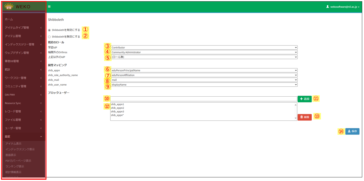 Shibboleth 属性と WEKO3 属性値のマッピング操作