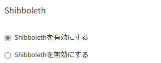 | ② | Shibboleth無効化 | Shibbolethを無効にする | ラジオボタン | N/A | Shibboleth認証によるログインを無効化する。 | |